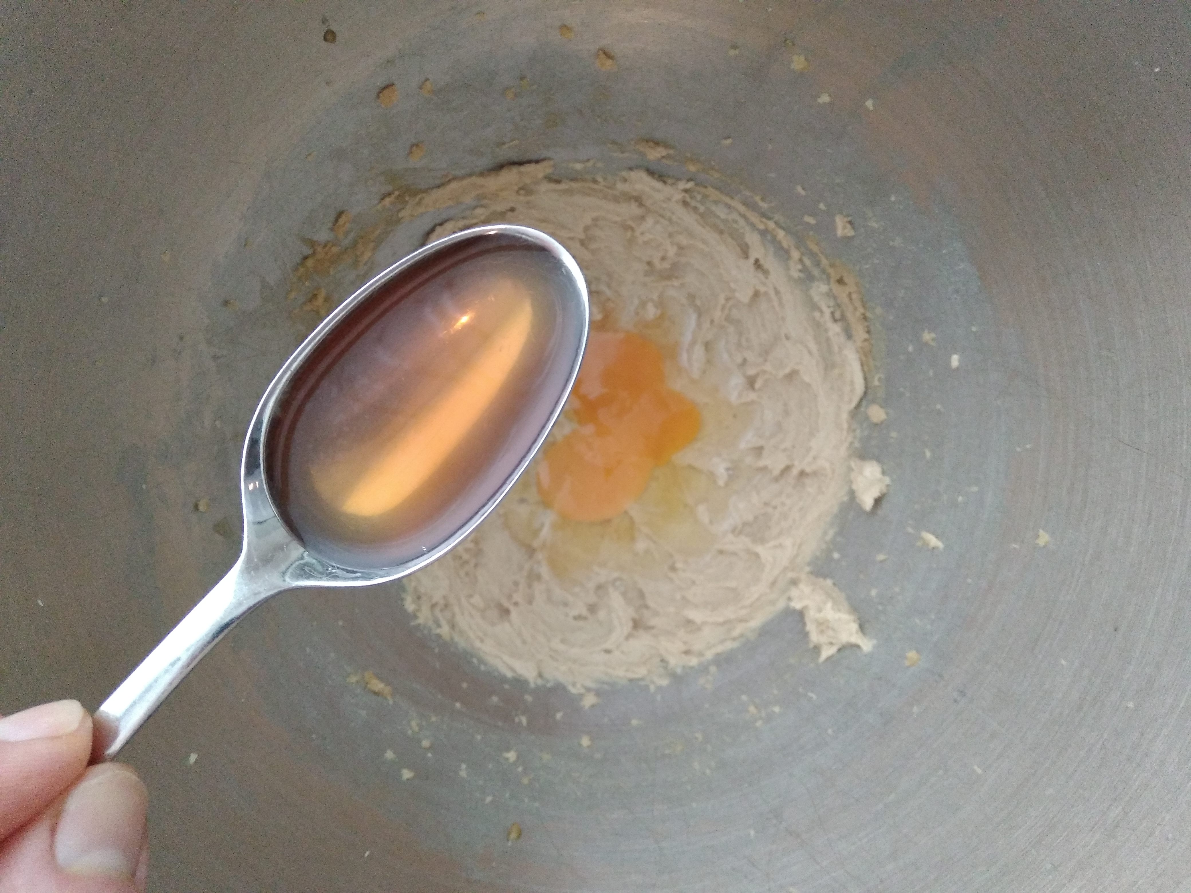 2. Beat the egg and vanilla essence well into the creamed butter and sugar.