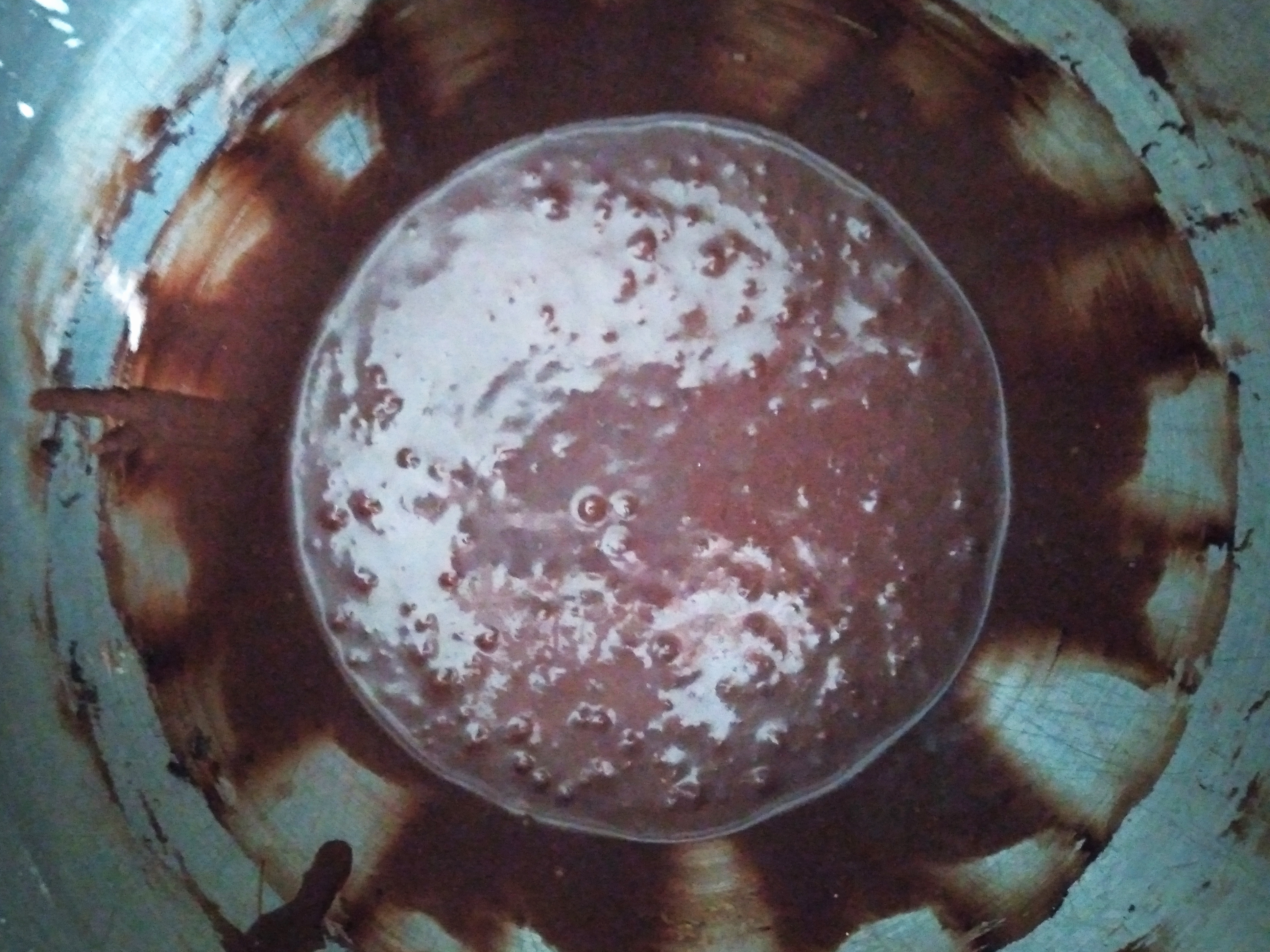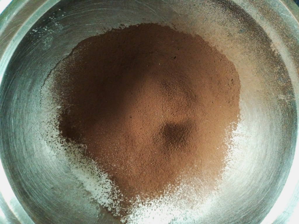 4. Sift together into a new bowl the cocoa powder, tapioca starch, potato starch, baking powder and salt. Add half of these sifted ingredients to the bowl with the egg/sugar/butter/oil mixture and very carefully fold together. Add the remaining half of the sifted ingredients to the egg/sugar/butter/oil mixture and again very carefully fold together until everything is fully incorporated.