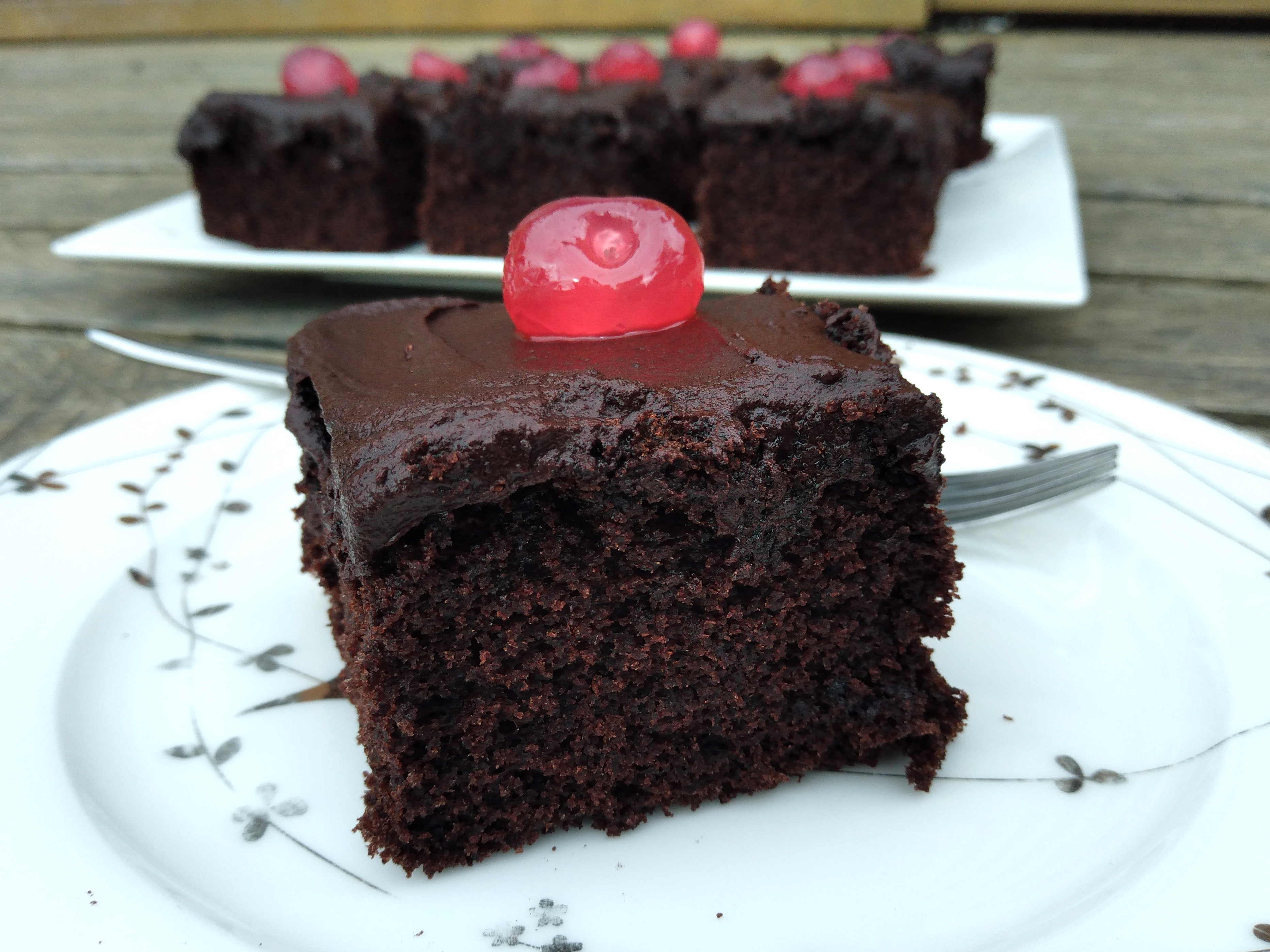 This is a light, versatile chocolate cake recipe. I sometimes make it as a sheet cake, topped with simple chocolate icing or a sprinkling of icing sugar, as a treat for picnics. I have also baked it as a layer cake for a birthday, deliciously iced with whipped chocolate ganache. The instructions here are for 9 inch by 13 inch rectangular baking pan, which I cut into 20 pieces once baked and iced. Adjust the baking times if you use a different size or shaped pan. This uses a 250 ml mug as equal to 1 cup.