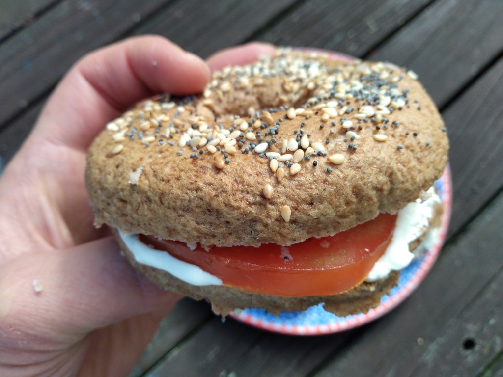 We are currently in isolation and half the family have covid and the other half are expecting to test positive any day now. Unfortunately, this has also coincided with me having baked my way through most of the bulk bags of gluten free flours and starches that I bought a few months ago, and it will take a few days for my online order for more to arrive. So, for now, I am experimenting with the flours I have left. And this is the result of that experimentation. I have decided to call these ‘wholemeal’ as it seems a good way to convey the wholemeal-type taste of these bagels.