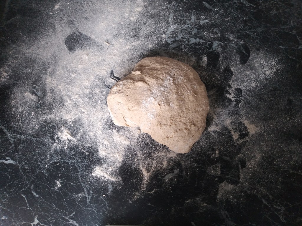 4. Cover the shaped dough with a damp cloth and leave to rise. My dough did not rise much at this point – I think my yeast is getting a bit old (but isolation means I can’t just go out and buy more!) and the room was quite cold. While the dough is rising, line a large baking tray or two medium trays with baking paper.