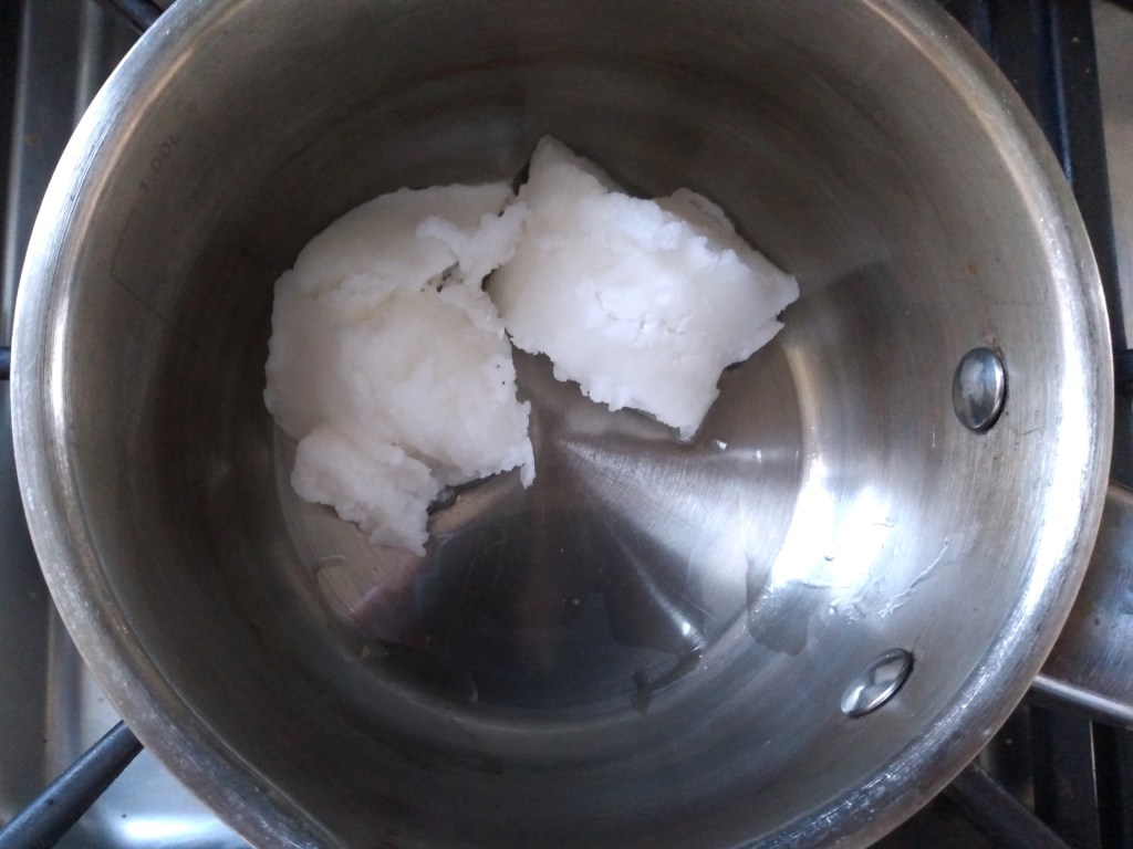 2. Melt the coconut oil in a small saucepan over a medium heat until fully melted. Remove from the heat and set aside to cool for a few minutes.