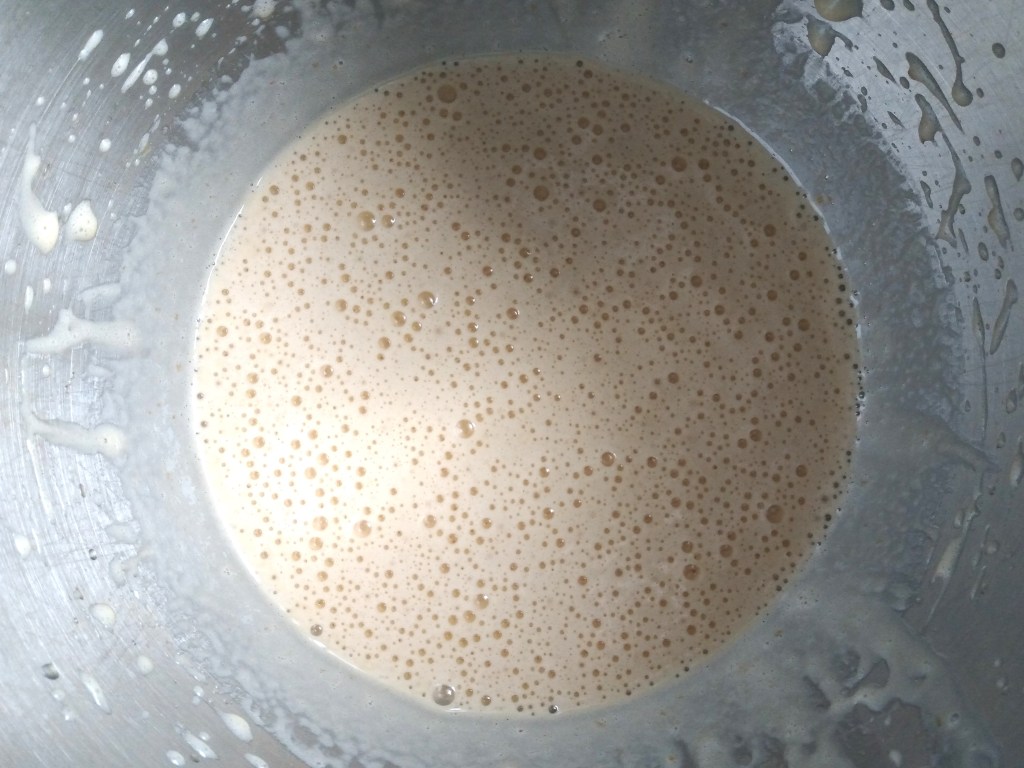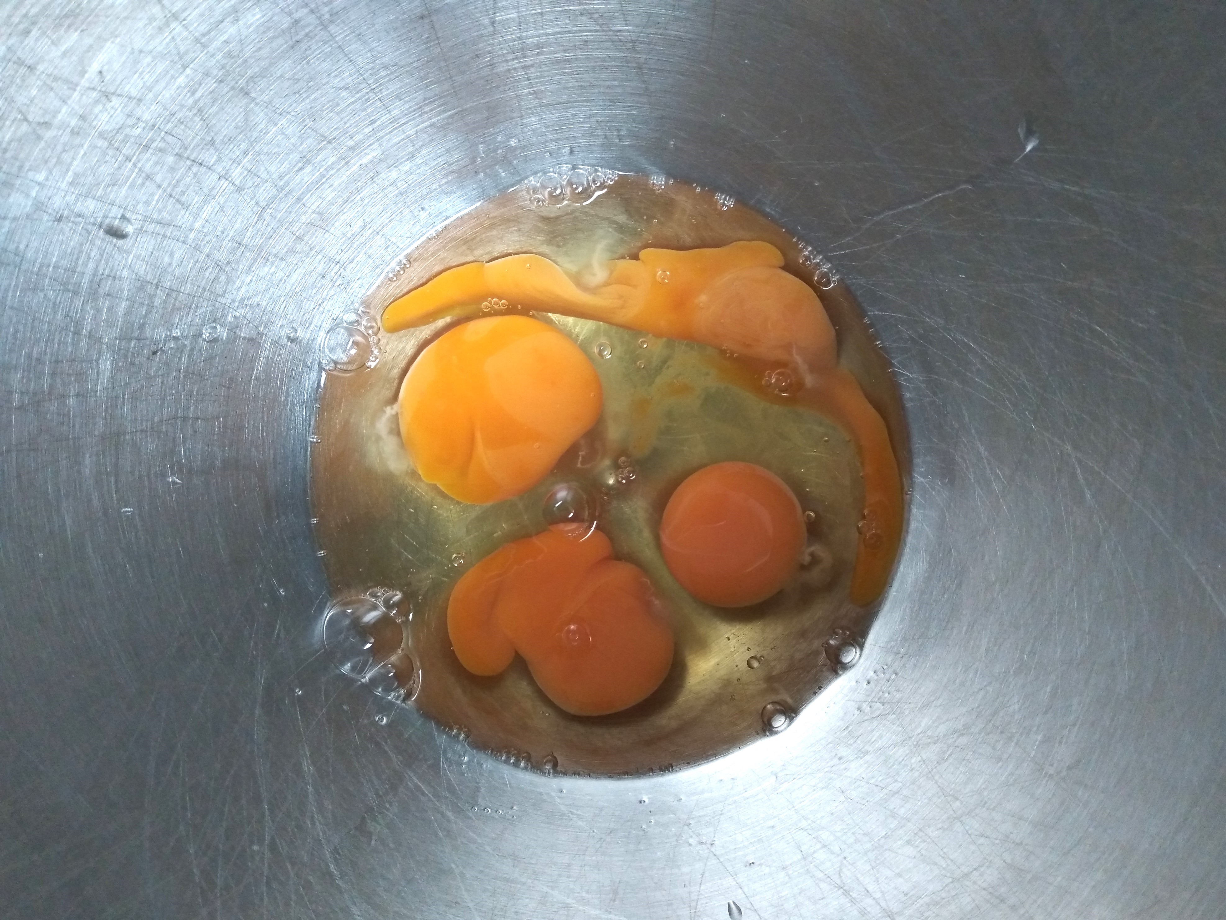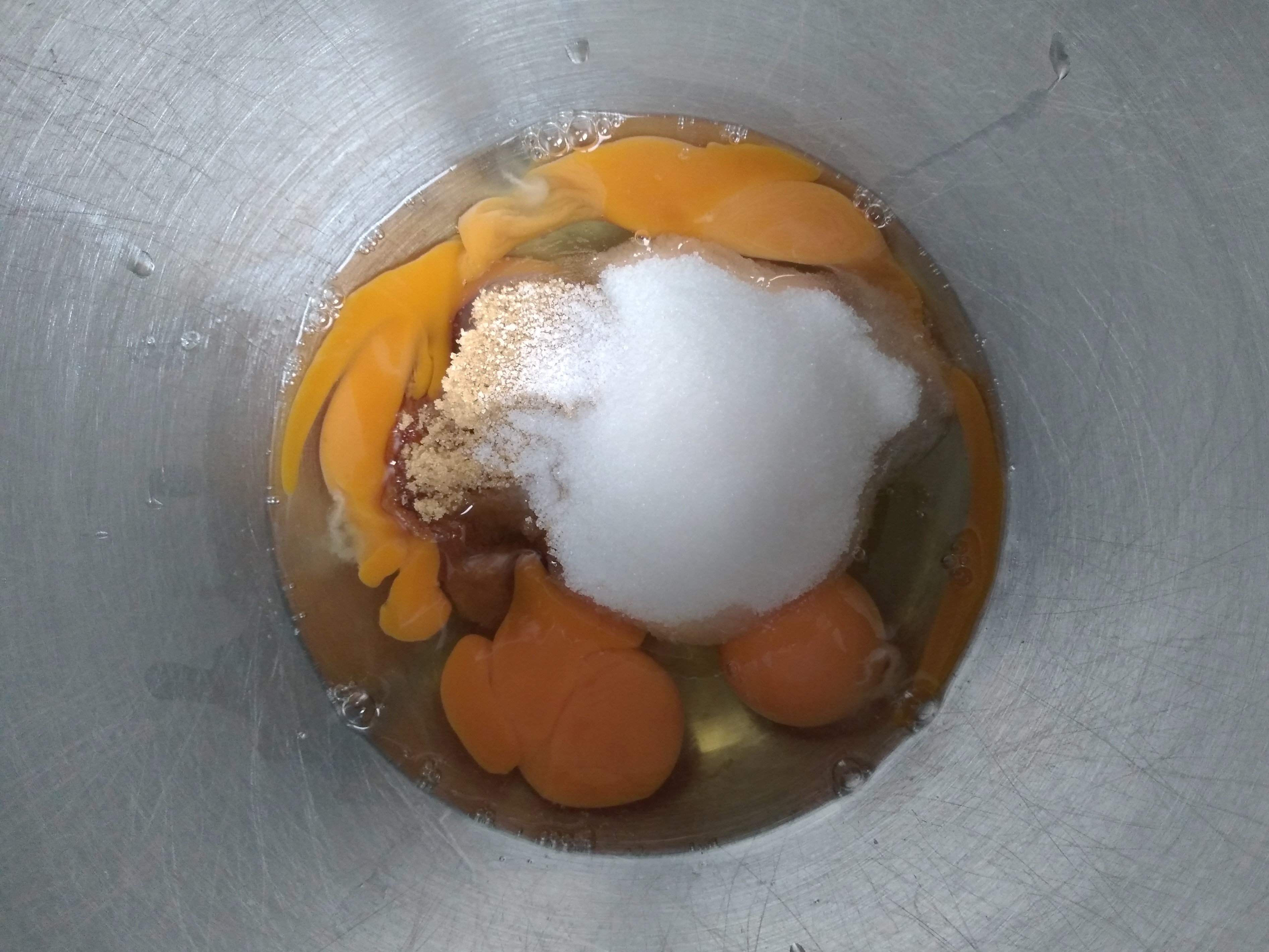 2. Beat together the eggs and sugars in a large bowl until light and frothy.