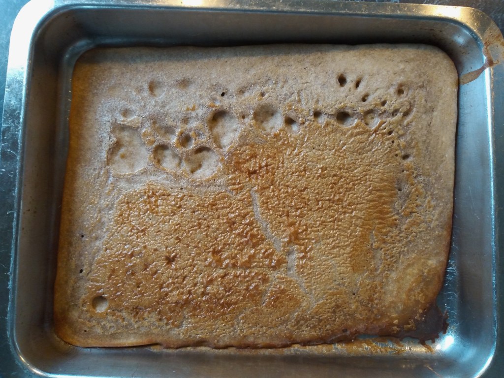 My family loves pancakes! But, as many people know, frying breakfast pancakes in sufficient quantities to satisfy hungry tummies can take a very looooong time. One great solution (way better than getting up at the crack of dawn so a steaming pile of warm pancakes is waiting when the everyone else gets up!) is to bake your pancakes in the oven as a traybake. In our house, this dish is known as pancake bread, and I often make a batch of this and use it as a substitute for bread for lunch – my kids even love it topped simply with peanut butter and jam. If you want real pancakes, this batter also works great for that! Feel free to add in whatever you like to the basic recipe – I like to stir in a cup of mixed seeds for extra texture when I use this like slices of bread for open sandwiches.