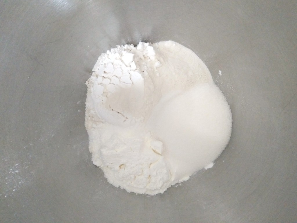 2. Place the cornflour, tapioca starch, rice flours, sugar and salt together in a large mixing bowl and mix together.