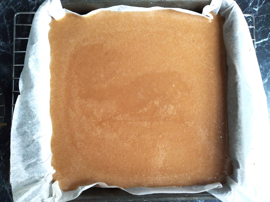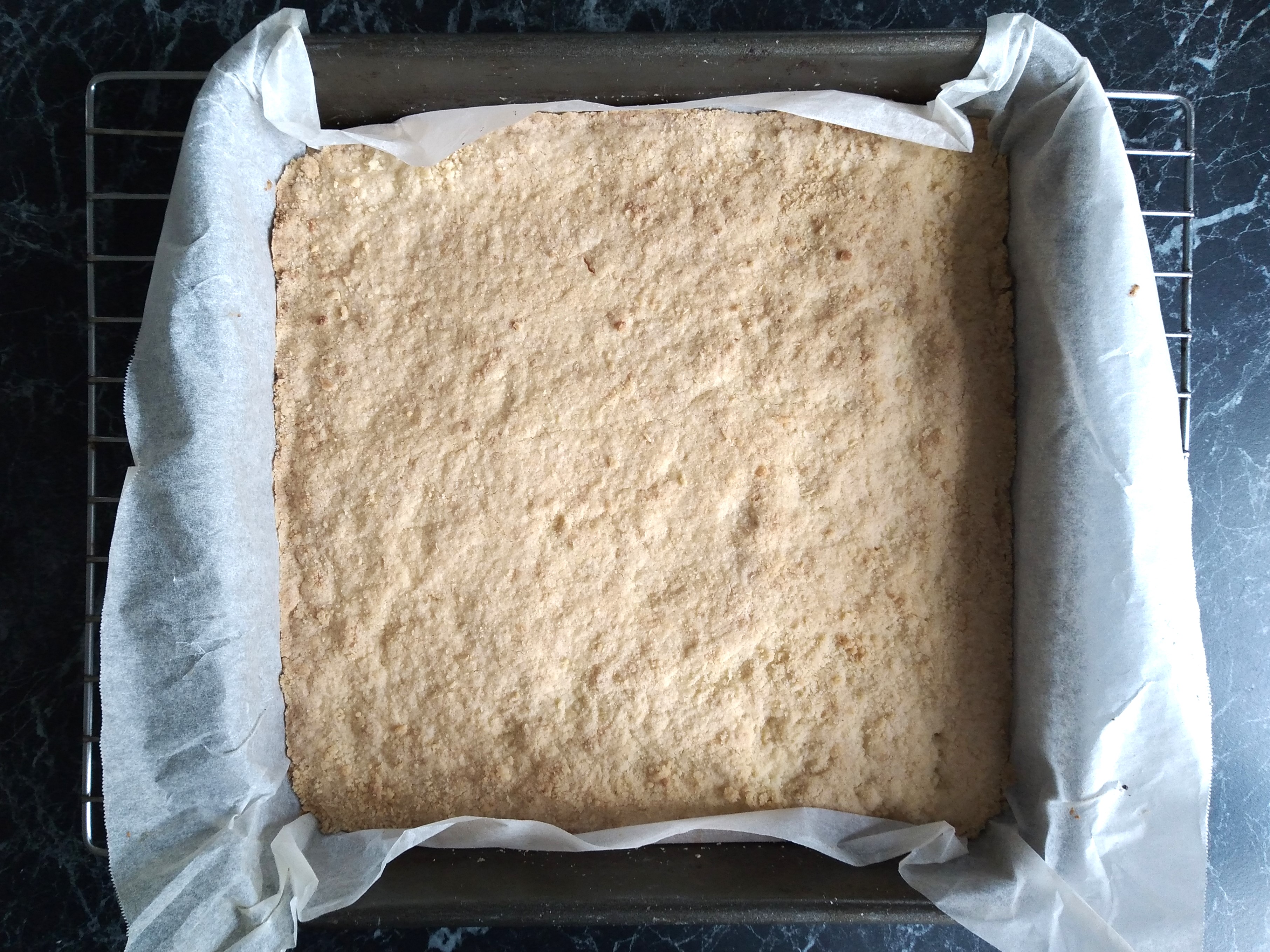 7. Remove the shortbread from the oven and leave to cool completely on a baking rack before starting on the caramel layer.