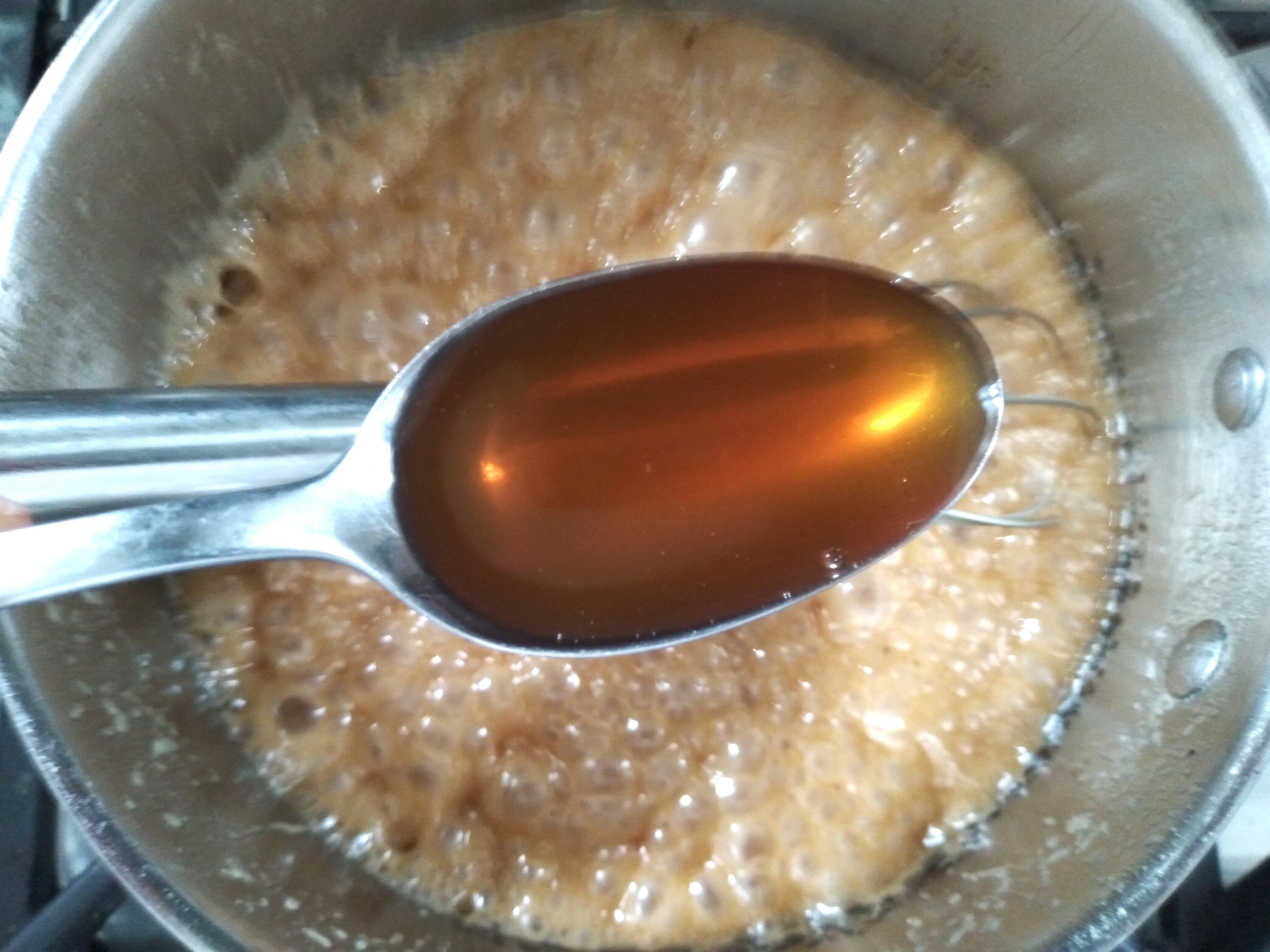 11. Once the caramel has simmered, remove the pan from the heat and stir in the vanilla essence.