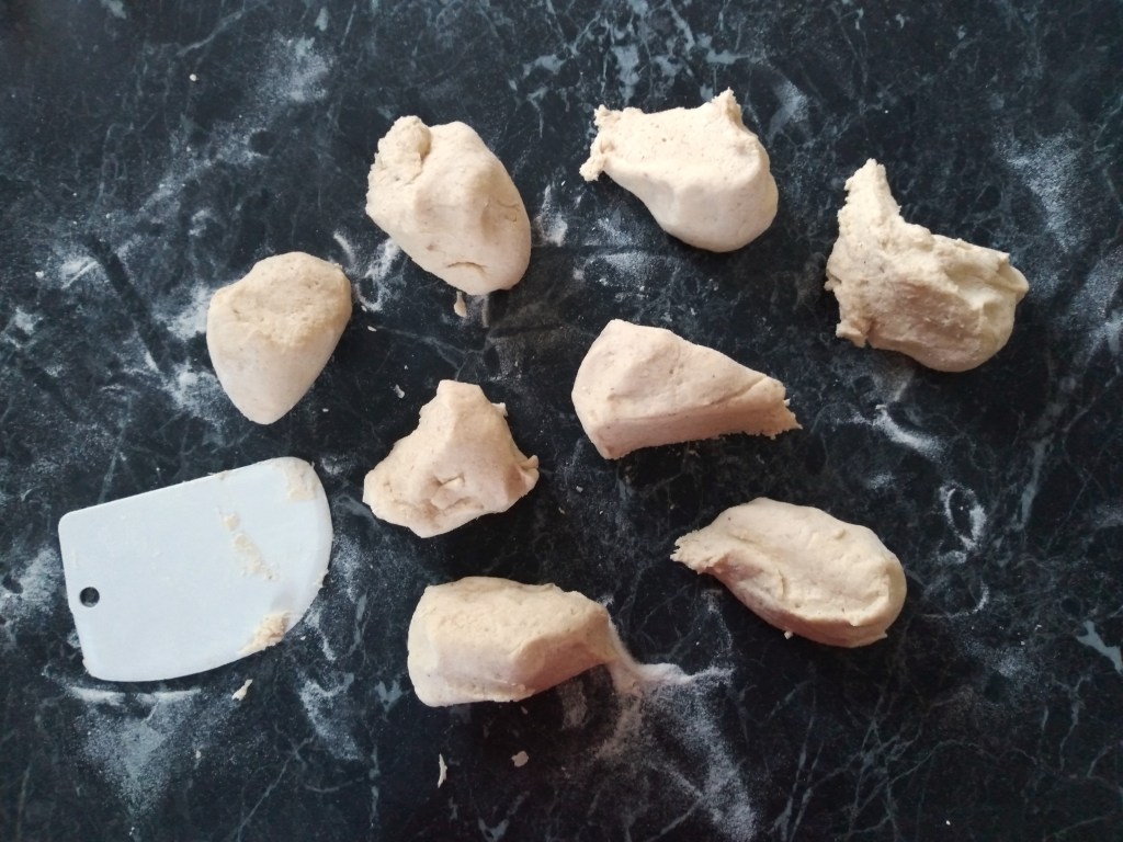 3. Once the dough has rested, lightly flour a clean work surface with additional rice flour and then roll and shape the dough into a circle. Divide the circle into 8 roughly equal-sized pieces. Alternatively, you could weigh the dough into 8 equally-weighted pieces.