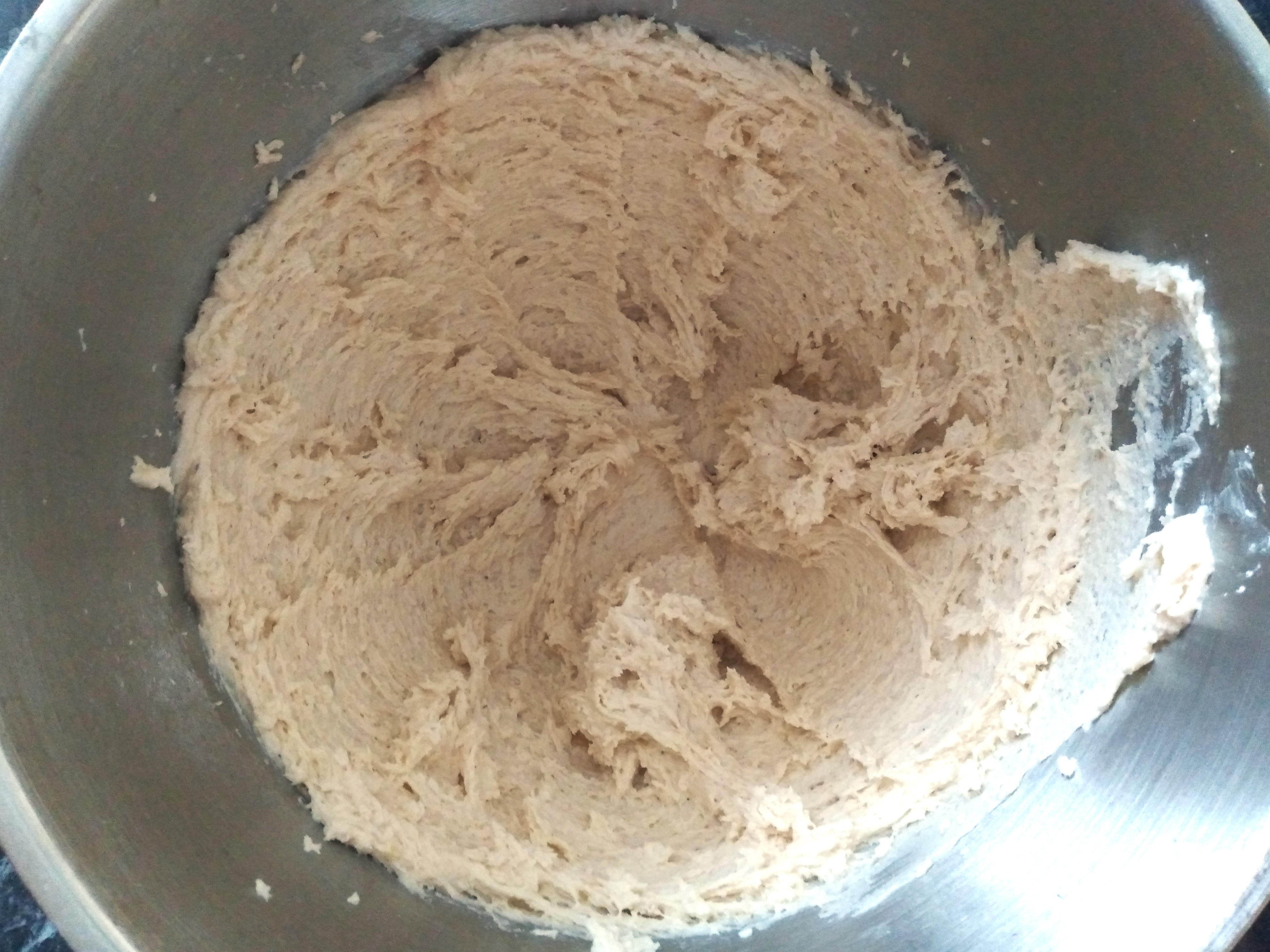 1. Mix together in a large bowl the eggs, white rice flour, tapioca starch, potato starch, psyllium husk, yeast, sugar, salt, baking powder, garlic powder, oil and water. I usually put the salt in the opposite side of the bowl to the yeast to avoid them mixing before the salt is well-diluted with the other ingredients and potentially killing the yeast. I mix this with my stand mixer as that is easy and quick, but you can mix it with a handheld electric mixer or by hand with a whisk or wooden spoon if you prefer.
