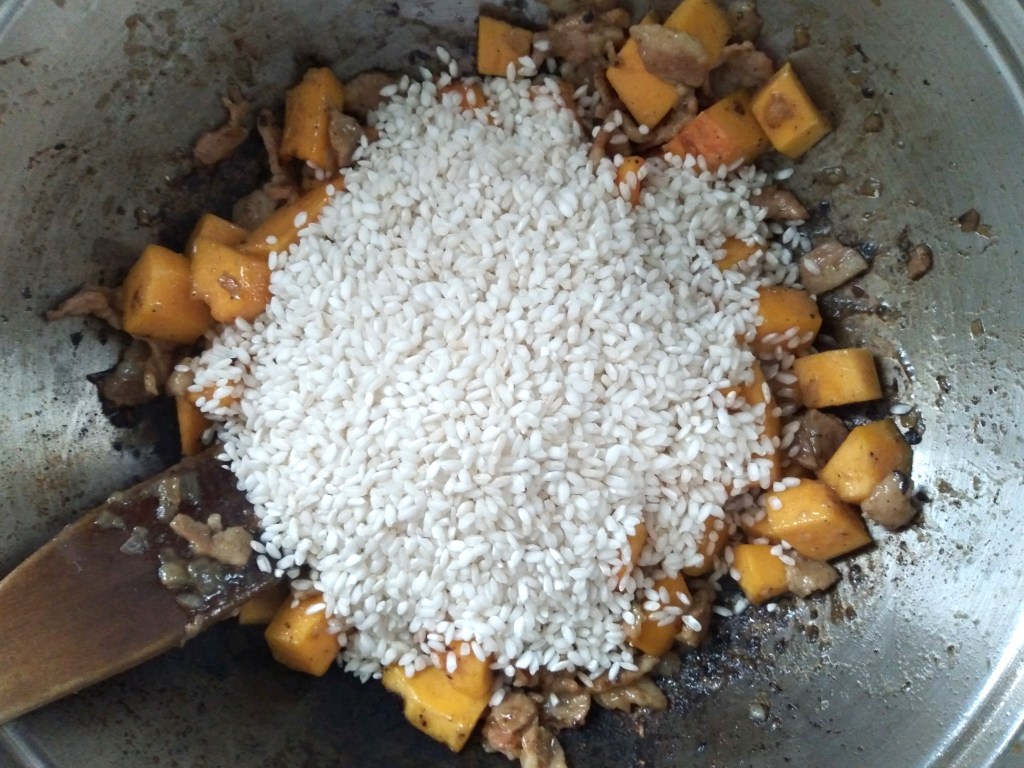 3. Add the rice to the pan and briefly stir into the ingredients already in the pan.