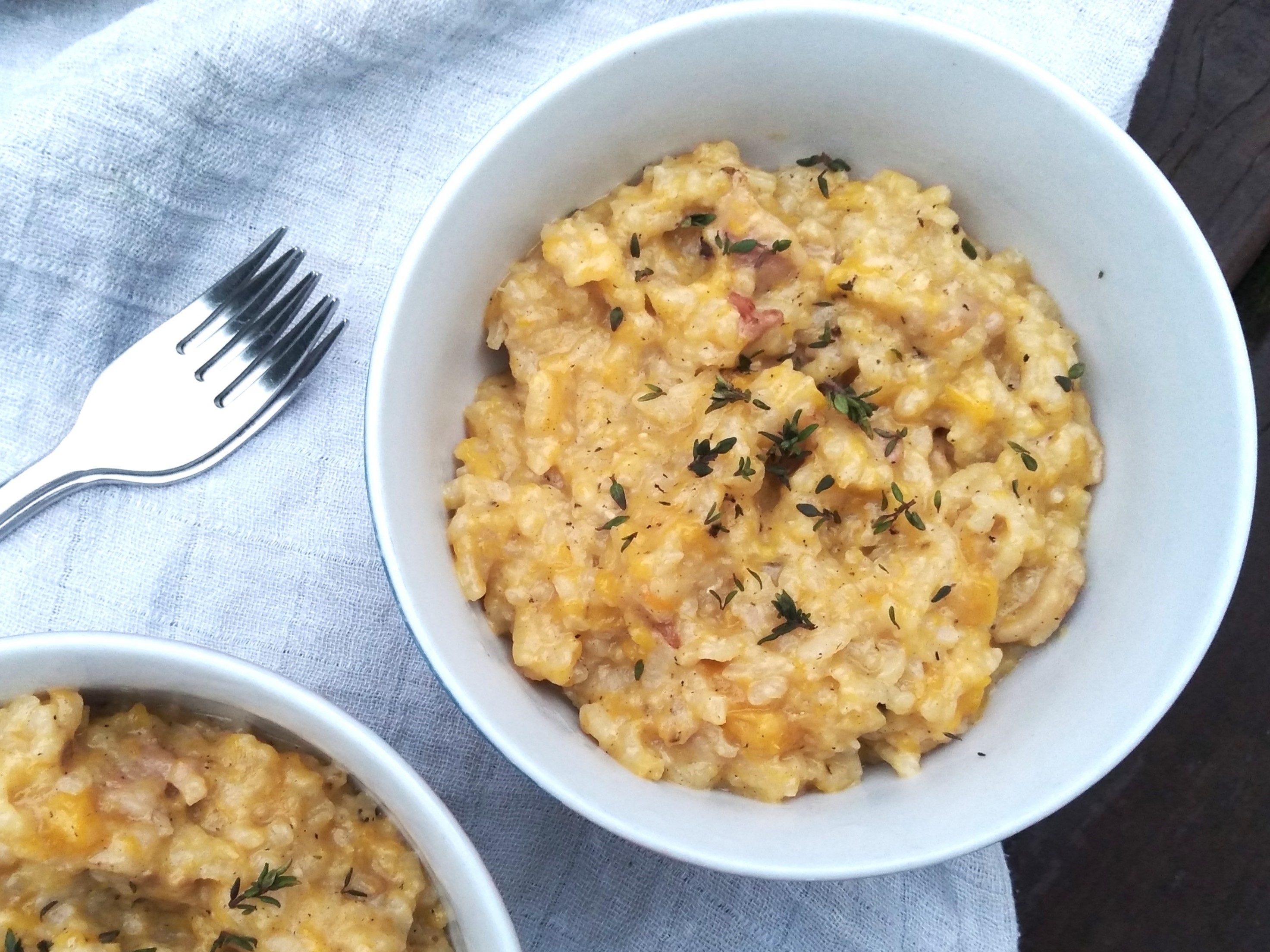 This dish can be made cheaper in a few ways. First, homemade stock is much cheaper than shop-bought stock and gives you better control over what goes into it. However, if you don’t have the time or inclination to make your own (I usually don’t), stock powder and stock cubes, from which you can make your own stock, are often cheaper than liquid stock – just check that any stock you buy is gluten free. Second, compare bacon prices within and between shops as these vary considerably. Finally, the type of cheese you choose will influence the price significantly – I calculated the cost of this recipe to be below NZ$ 20, including part of a block of parmesan cheese, but choosing a cheaper block of cheese will bring down the price – the type of cheese I’d suggest depends on which country you are in but options such as Cheddar, Edam and Colby should all work!