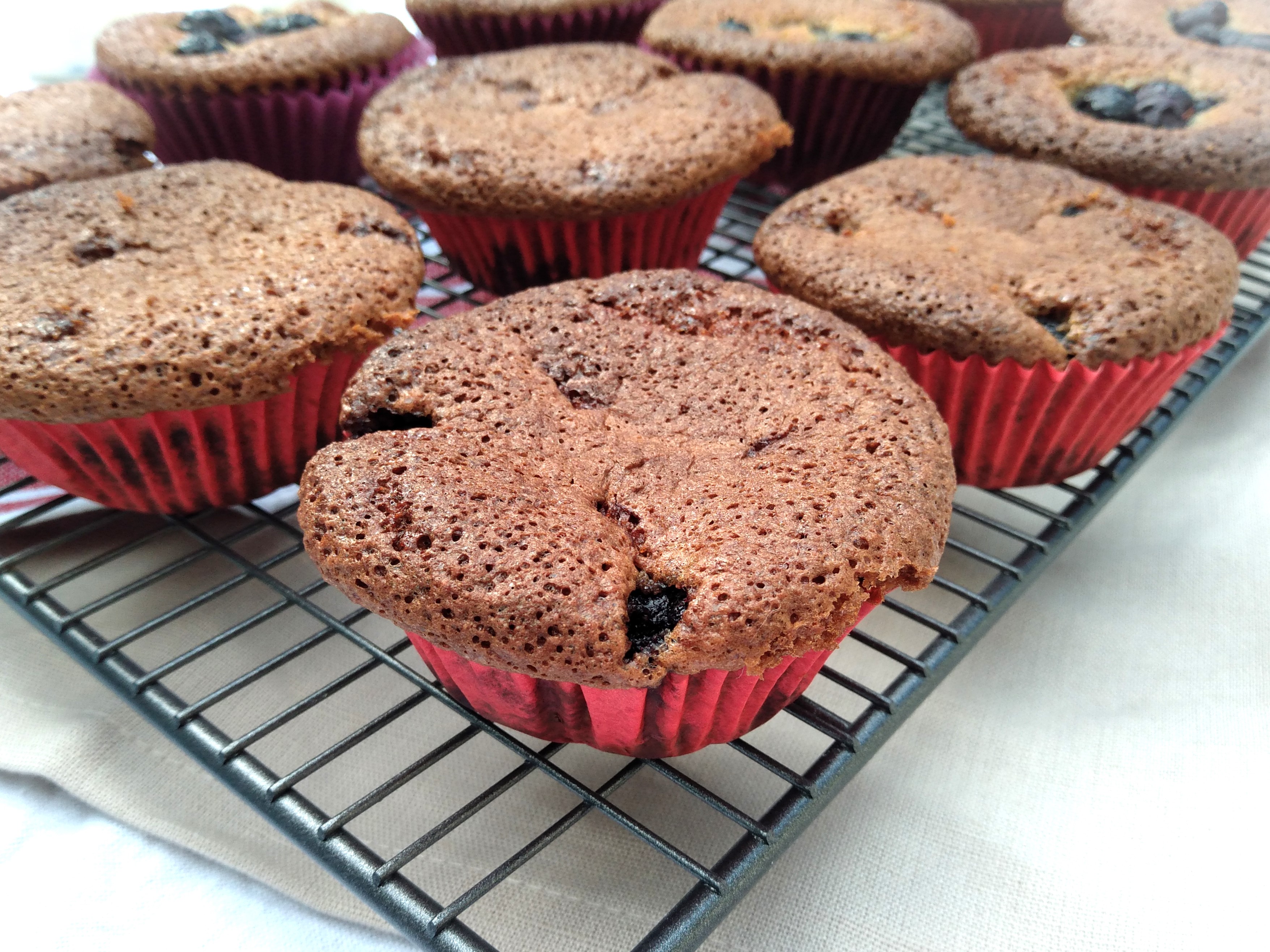 9. Once baked, remove the muffins from the oven and leave to cool in the pan for about 5 minutes, before removing from the pan and placing on a cooling rack to finish cooling. If using, sprinkle a little bit of icing sugar on top of each muffin once they are all on the cooling rack.