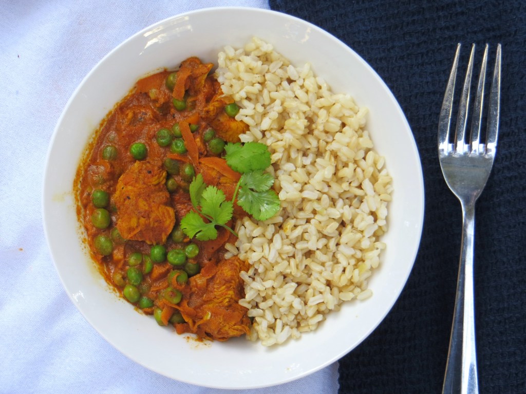 If you can chop and grate and get chicken to cook quicker than me, this yummy curry may fall into the category of 30 minute meals. However, because I usually take a few minutes longer than that, I don’t feel justified in making that claim. But this is a great, tasty weeknight dinner option – the chicken is not marinated in advance and the flavour comes from ground spices that are fried together at the start of the cooking process so it is quick to pull together with no advance preparation. If you need this dish to be gluten free, ensure that your spices don’t contain gluten.