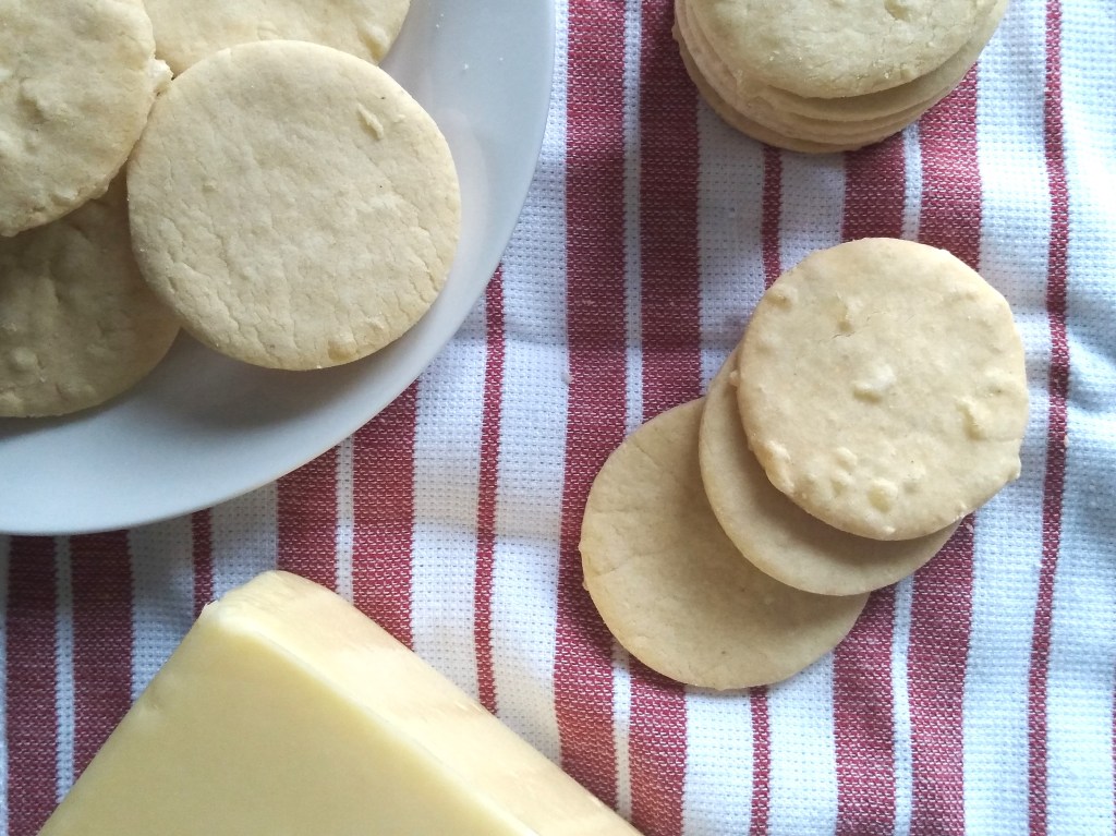 There are few moments in baking when American vs British terms become more stark for me than when I am writing up a recipe and need to decide whether to call it a biscuit or a cookie. These cheesy bites of deliciousness are biscuits in the British sense of the word. I kind of want to call them cheese shortbreads but feel they aren’t quite ‘short’ (crumbly!) enough for that. We enjoy these for easy lunchbox or morning and afternoon tea snacks, although they’d also be quite at home on a cheese board or used as a base for an appetiser. These little biscuits keep fine in an airtight container at room temperature for a couple of days and can be frozen and defrosted for later use.
