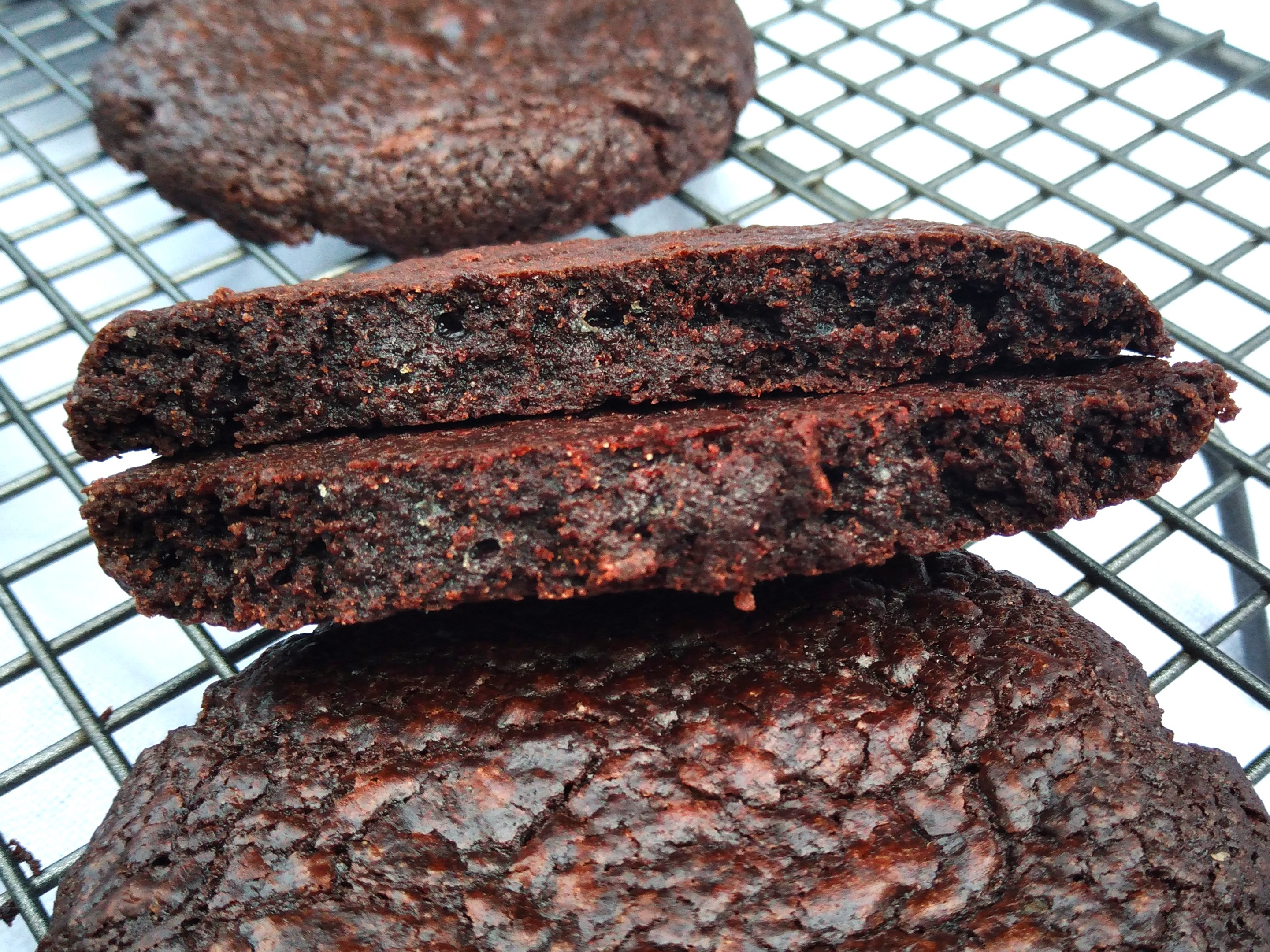 These biscuits (or cookies if you hail from a different part of the world to me!) are rich, deeply chocolatey and fudgy. When I first started developing this recipe I thought it would be easy. I was wrong and I have lost count of the number of iterations I have produced, each with small tweaks to make these as good as I can. As the name implies, the texture of these biscuits is mostly fudgy, but if you prefer very crispy edges, they can be baked for up to 10 minutes instead of the 7 minutes given in the recipe below. For best results, the dough should be left to rest and chill overnight before being baked but if you want these biscuits sooner than that I’d recommend chilling the dough for a minimum of 2 hours before using it. The measurements below are based on a 250 ml cup as equal to 1 cup. To make these extra delicious, smear a little bit of sour cream over the top of each biscuit before you eat it – so yum!