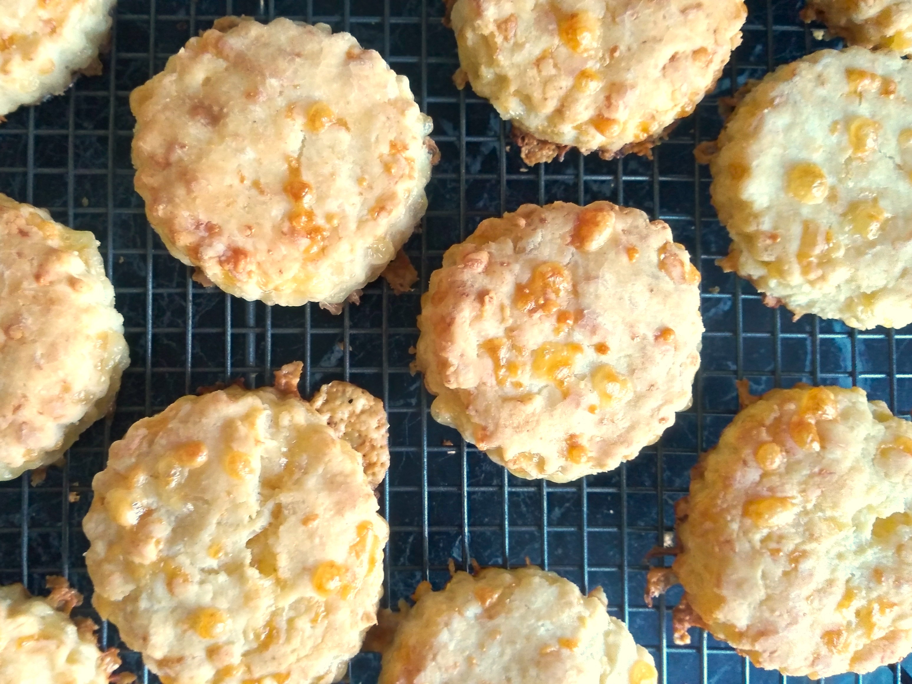 2. Mix the flour, cheese, baking powder and salt together in a large bowl.