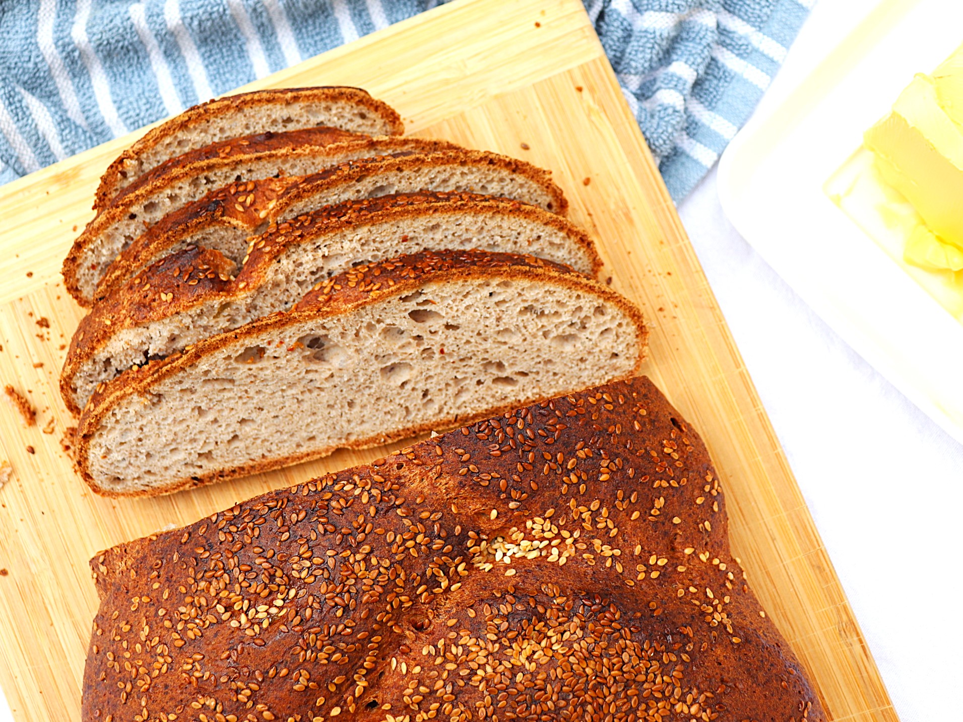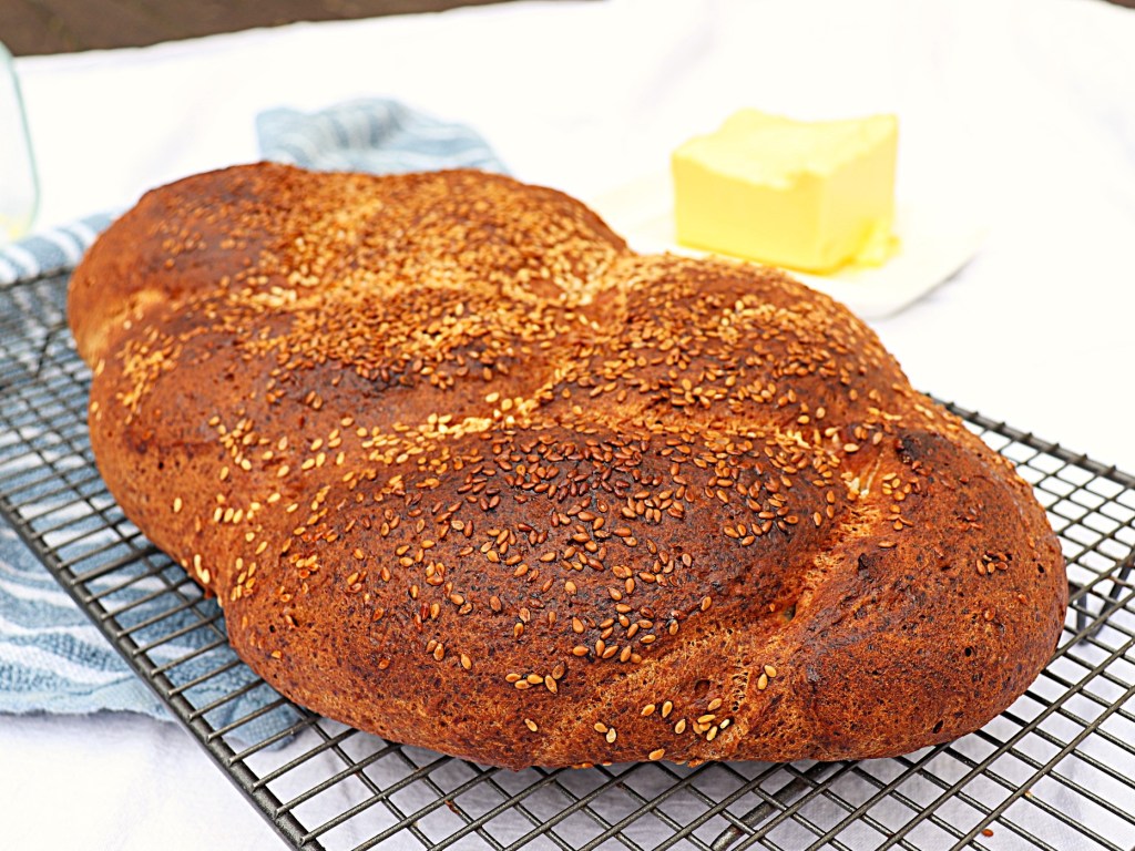 8. Once baked, cool the bread fully on a cooling rack before eating. Store in a sealed plastic bag for 1 to 2 days at room temperature or slice and freeze for future use. If freezing, the bread slices can be reheated in a microwave or hot oven and then used straight away.