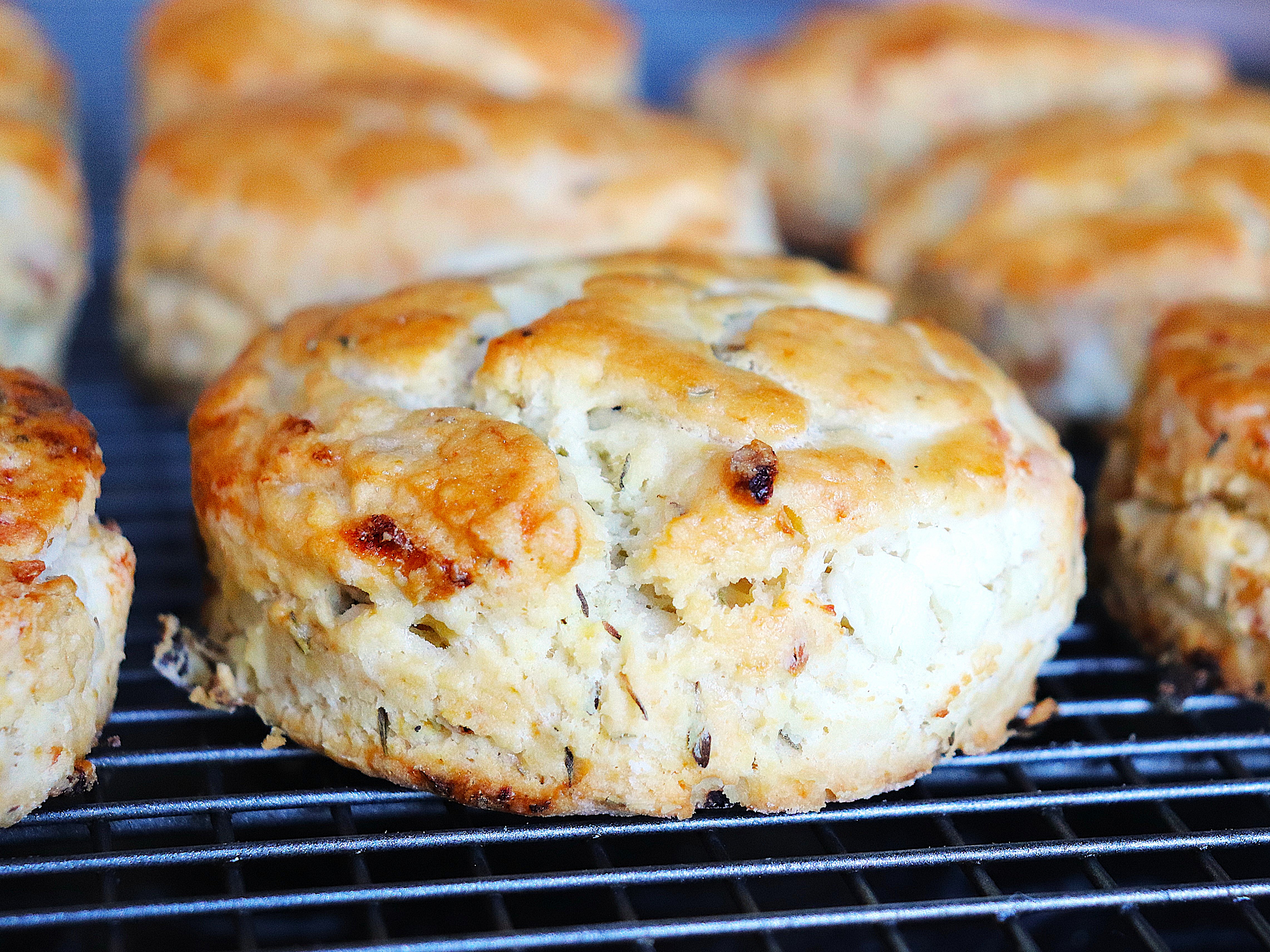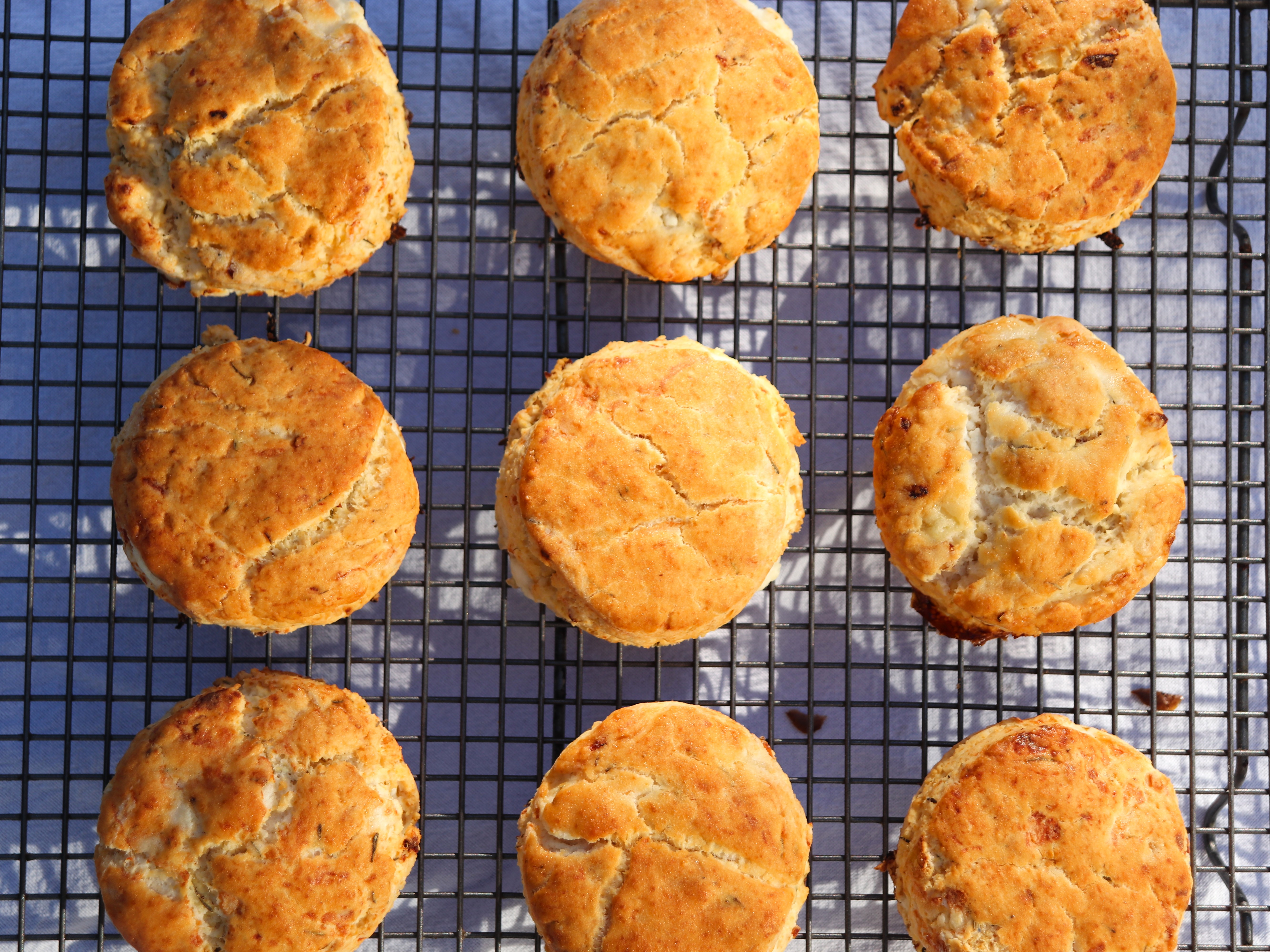 11. Remove the scones from the oven and place each on a cooling rack to cool down.